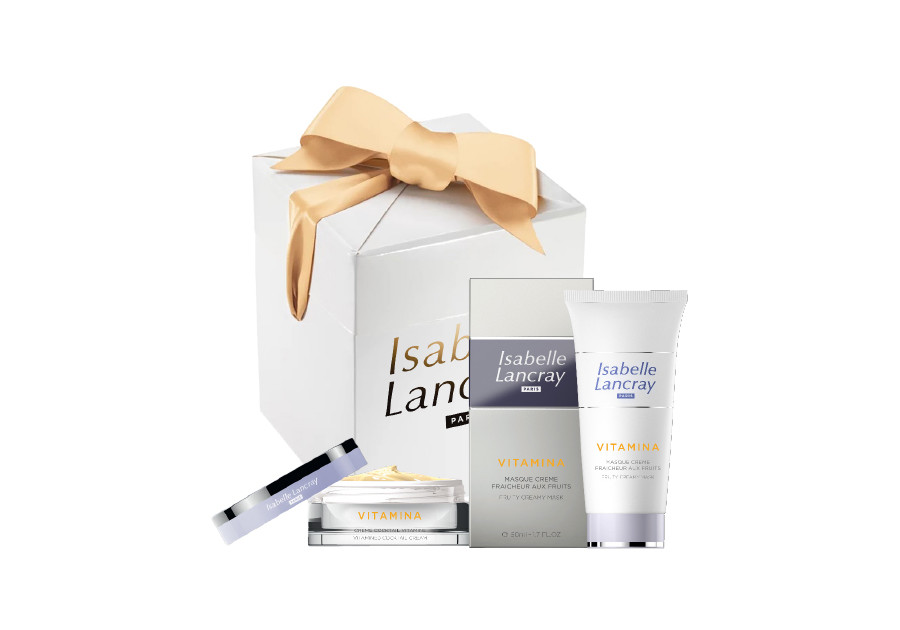 Zestaw produktów do pielęgnacji cery suchej z witaminami A, E, F i kwasem hialuronowym o działaniu nawilzającym i antyrodnikowym. W skład zestawu wchodzi ochronny krem z koktajlem witamin i kwasem hialuronowym i maska witaminowa z komórkami macierzystymi kiwi i limonki. Całość zapakowana w eleganckie pudełko.